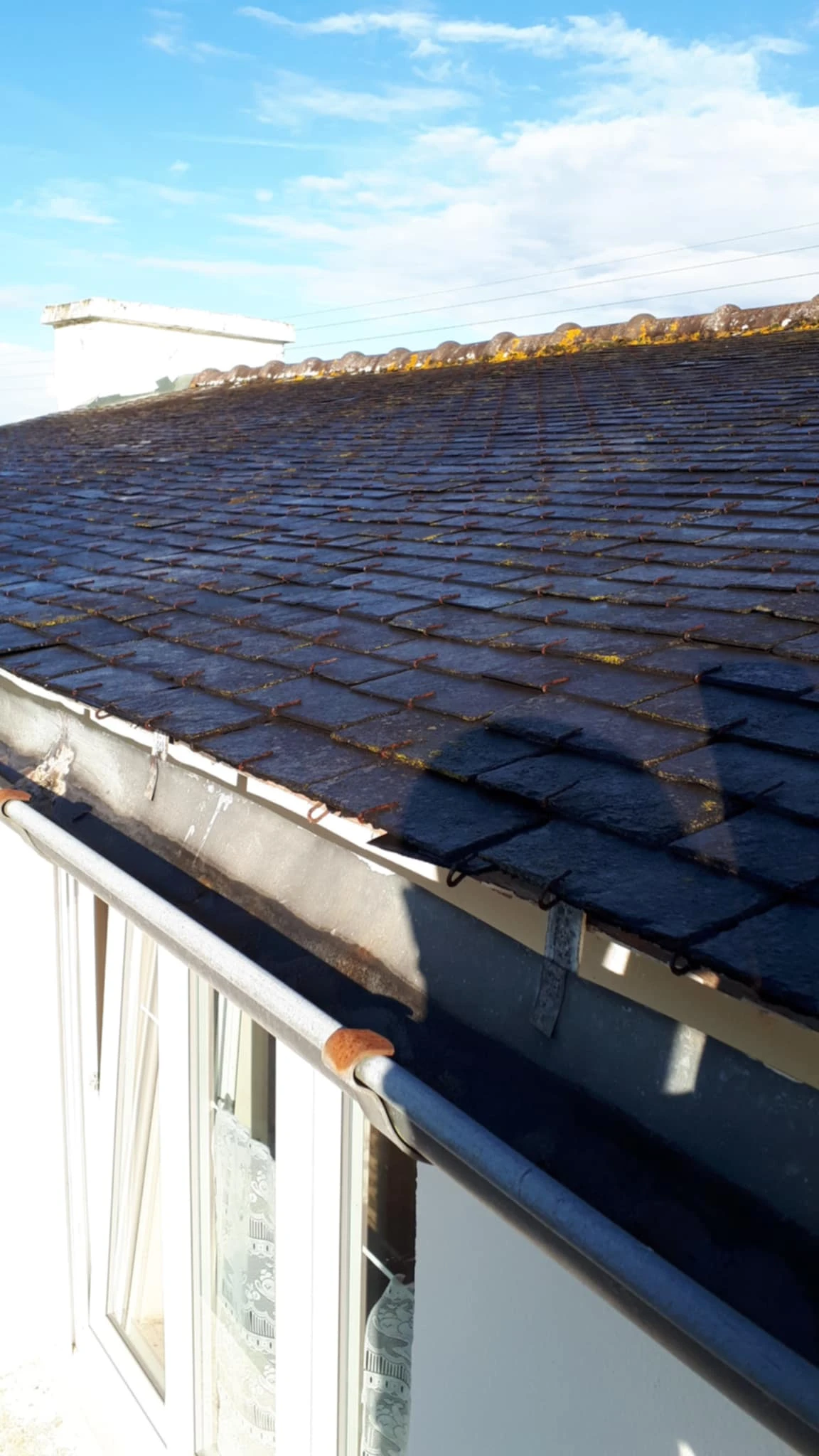 Avant toute intervention sur les ardoises et la gouttière, l’équipe a vérifié et réparé le support de toiture, garantissant la solidité et la longévité de l’ensemble de la couverture.